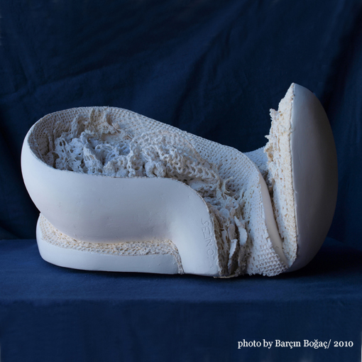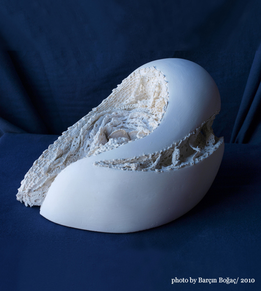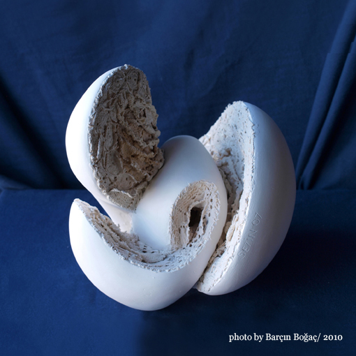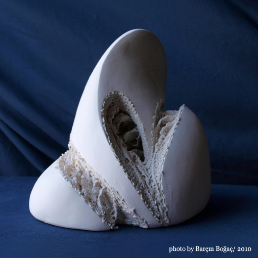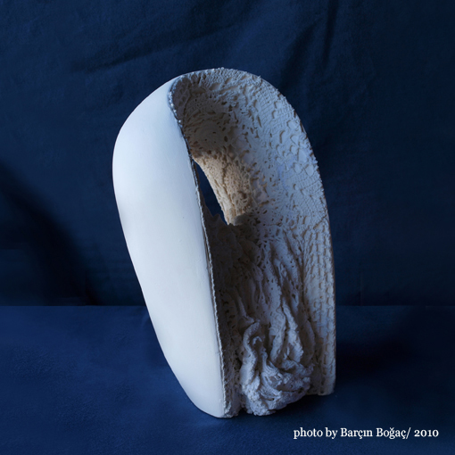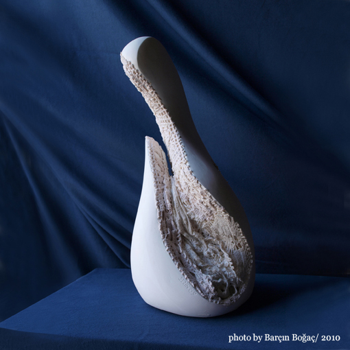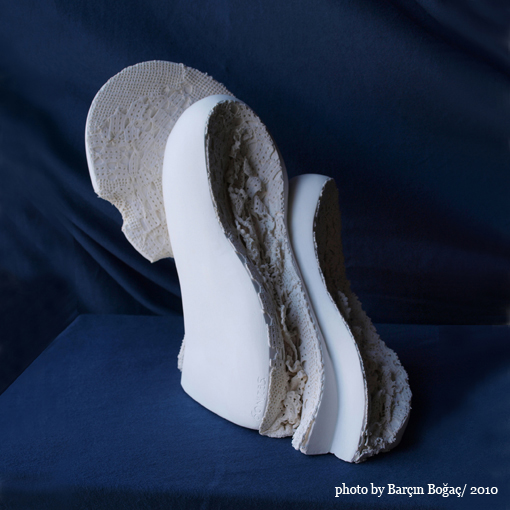 On 7th of May 2010, Turkish Cypriot artist Sezin Boğaç opened her first solo-exhibition named “Women of Lace-Giving Birth” at İsmet Vehit Güney Art Center in Nicosia/ Cyprus. In order to tell the secret dreams, hopes and wishes of many women which has been told trough generations to generations via lace-work, the artist transformed these hand-works into spectacular sculptures. Sezin Boğaç opened her firs exhibition after having 5 years art training and practice at Pygmalion Sculpture Studio by Cyprus’s most famous and well known sculptor Baki Boğaç.