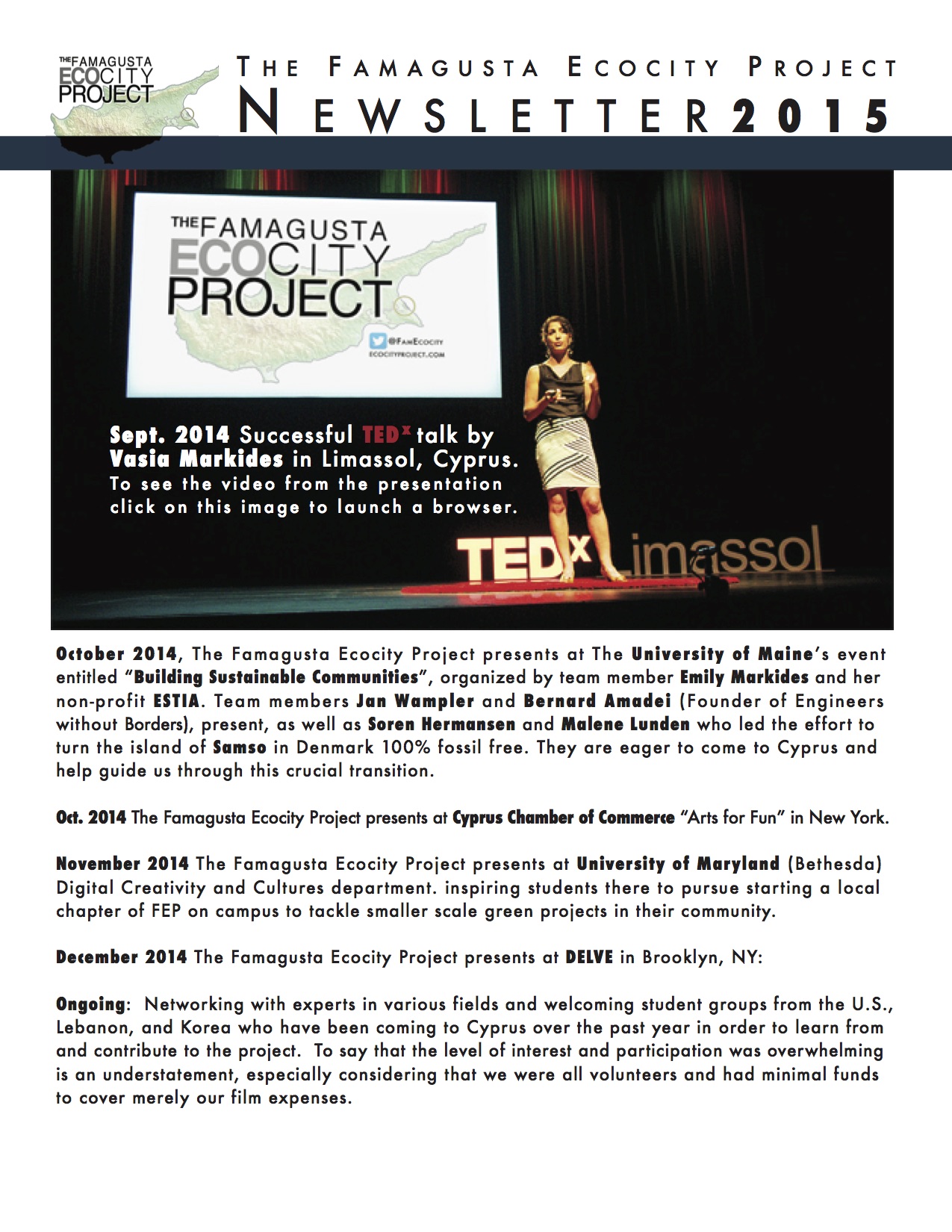 The Famagusta Ecocity Project 2014-2015 newsletter is out