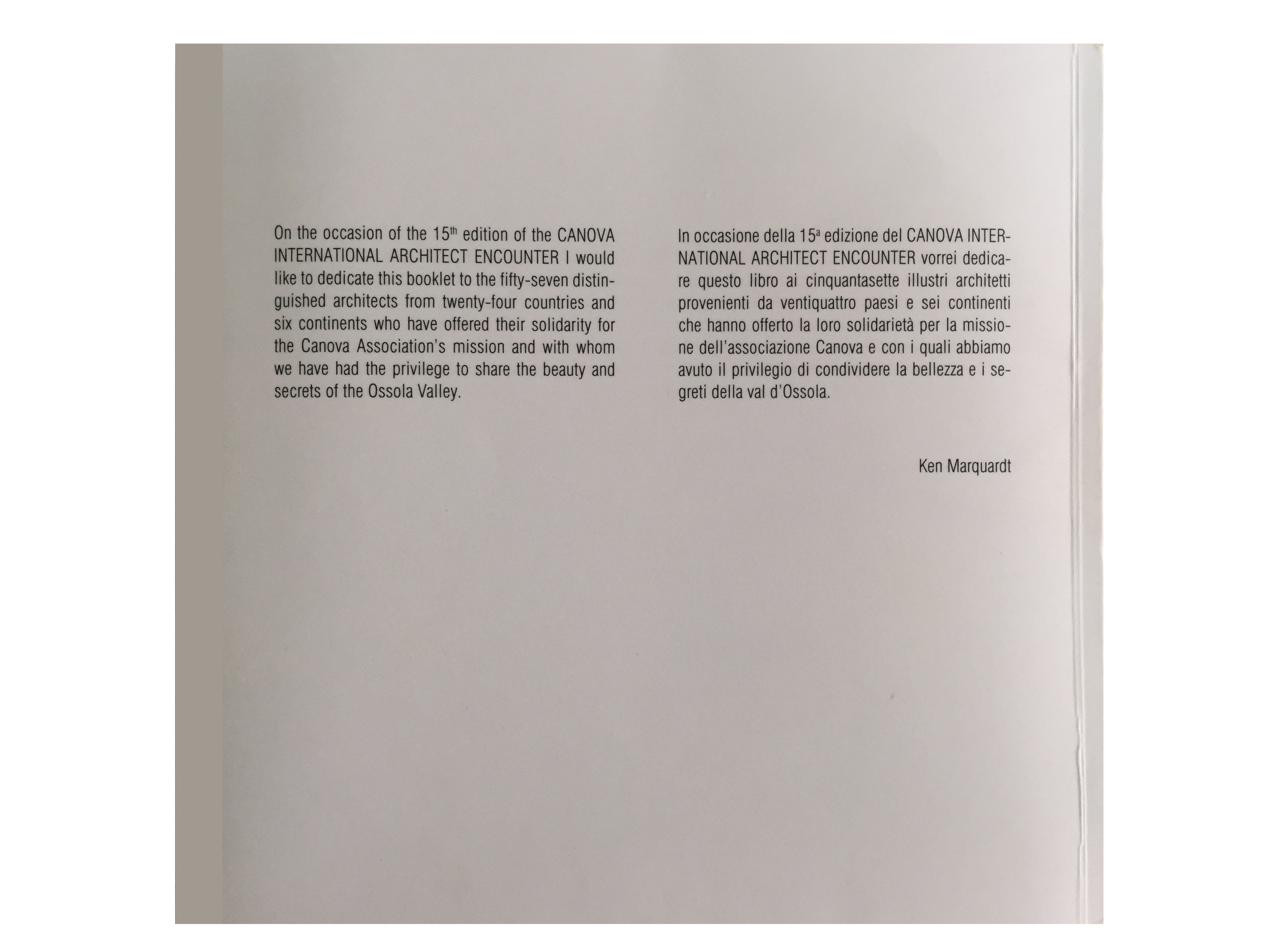 I am so honoured to be part of Canova International Architect Encounter with other 56 distinguished architects from twenty four countries which is organised every year by Canova Association. The association has been developed spectacular recuperation and re-evaluation of rural medieval stone architecture in Canova, Oira di Crevoladossola, Italy, since 2001. The goal of the association is to increase the understanding of our cultural heritage of rural medieval architecture. Every year in the month of June, the association organises a meeting -of four architects that are active on the world stage- as an encounter. I was so privileged to be one of those architects and meet with productive and intellectual community of the association. I am very grateful to the each member of the association, especially to Ken Marquardt, Maurizio Cesarini, Paolo Volorio, Patricia Testore, Giada Catherina Zerboni, who shared with me incredible memories in the Ossola Valley.