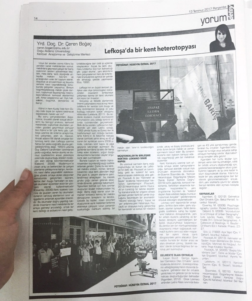 Lefkoşa’nın en büyük kentsel çelişkisi olan ikiye bölünmüşlük noktasından insanların birleşmeye çalışması karma bir kent okuması için eşsiz bir fırsattır.
