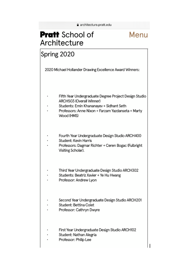 Pratt Undergraduate Architecture Chair Erika Hinrichs and Dean Harriet Harriss for this opportunity.
