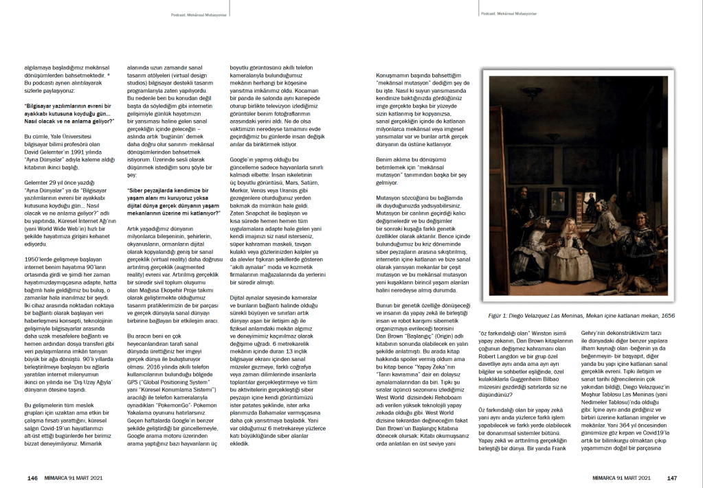 Çok değerli meslektaşlarım Abdullah Can ve Münevver Özgür Özersay’a, Mimarca Dergisi’nin 91. ”Çevrimiçi: Dijital Mekanlar” özel sayısının Kitap Eleştirisi köşesinde, Mekansal Mustasyonlar podcastıma yer verdiklerinden dolayı, çok teşekkür ederim.