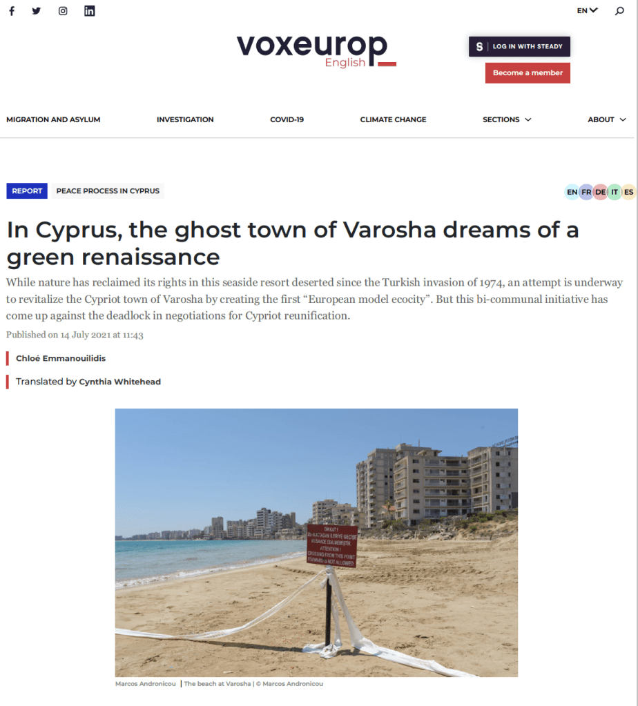 Thanks to Chloé Emmanouilidis from VoxEurop for this piece. We are a group of people (Famagusta Ecocity Project)who loves nature, who believes we need to take an action for climate crisess, who knows that peace is only way for sustainable human existence- especially on a small island. We study based on science and facts and as I mentioned once again in this interview: