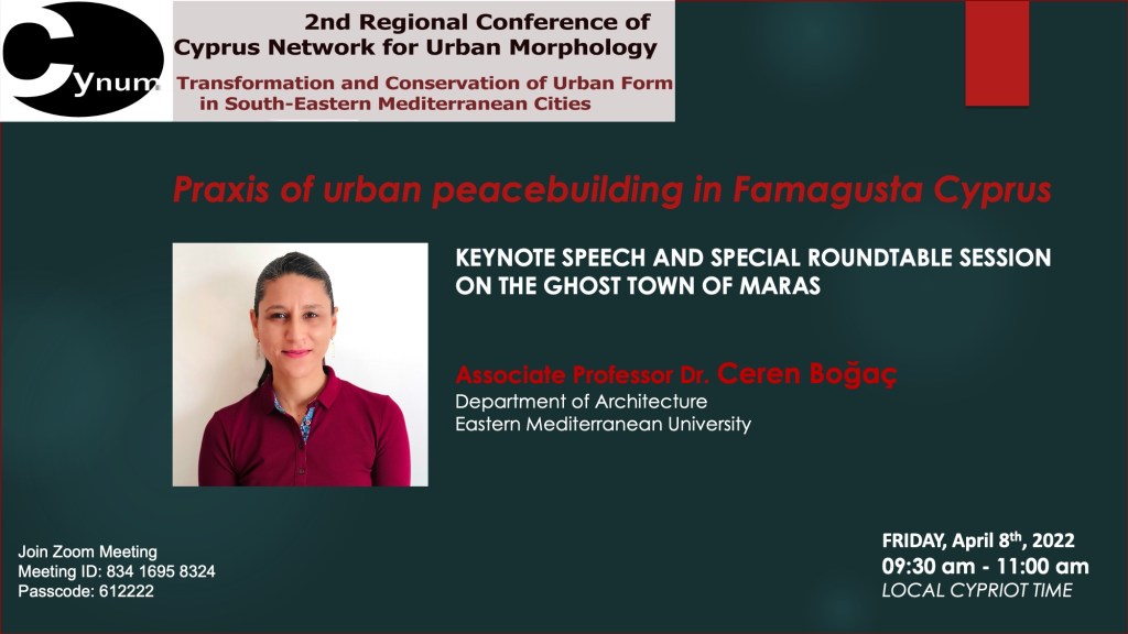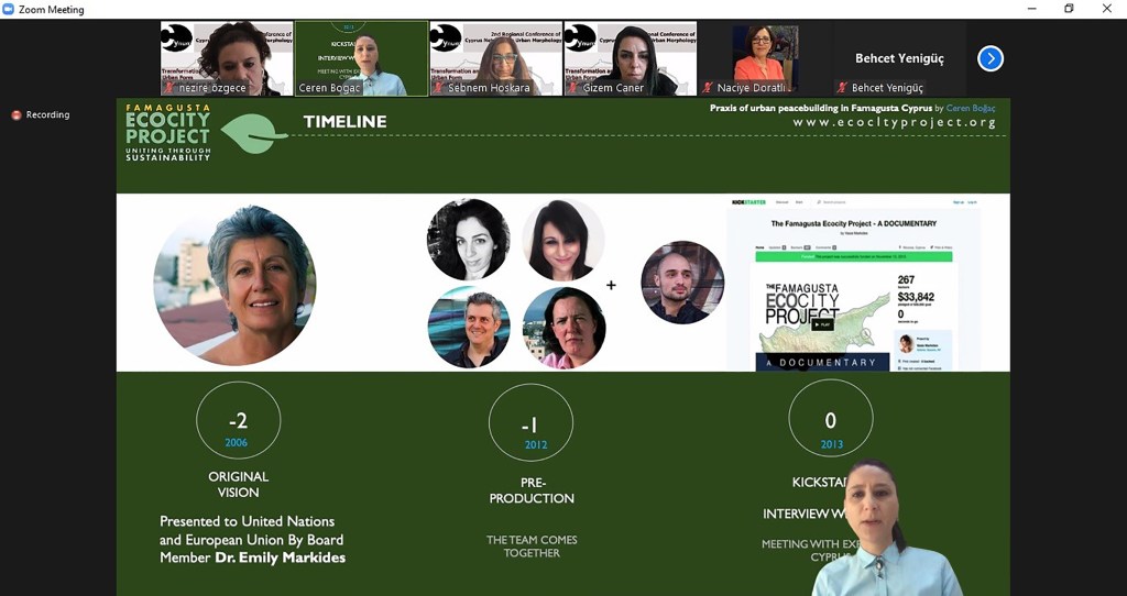 This presentation focused on urban peacebuilding in Cyprus, which has been physically divided for more than forty-five years based on the ethnic identity of its two main communities (the Turkish Cypriots in the North and the Greek Cypriots in the South) through the special case Famagusta. The fragmentation of the island in 1974 caused many people to relocate from north to south and vice versa. The separation of social spaces from each other took a sense of belonging into a chaotic form since both communities of Cyprus were detached from their own homes and neighborhoods. This turned many places on the island into a sensitive issue to negotiate. Varosha, once the most vibrant center of tourism in the Mediterranean region, had been abandoned by its original inhabitants, and closed off to the public with barbed wire fencing, and has been depicted as a “ghost town” in international media. It became a symbol of the north-south conflict. Varosha partially re-opened in October 2020 after 45 years of being held hostage. The reopening presents a unique opportunity to learn from the mistakes of the past and rebuild for a better future. Yet it comes with significant risks. Without careful planning, it could become just another unsustainable development in an already crowded Mediterranean tourism market, while cementing Famagusta as the second divided city in Cyprus. The Famagusta Ecocity Project is a vision to turn the whole of Famagusta, not just Varosha, into a beacon for peaceful cooperation and sustainability. The project has been started in 2013 by group of volunteer activist to dissolve the ongoing conflict through mutual dialog, with an empathic language and to design with people a balanced and integrated environment with nature and set an example as a praxis of urban peacebuilding.