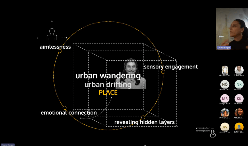 Places pulsate with emotions, memories, and lived experiences. Today, I delved deep into the concept of ‘cityscapes of feeling’—a realm where psychogeography intersects with urban design. I’d like to extend my gratitude to all the participants, including my colleagues and both former and current students from undergraduate to PhD levels, for joining me and posing insightful questions. A special thanks to Şebnem Hoşkara for organizing this seminar series.