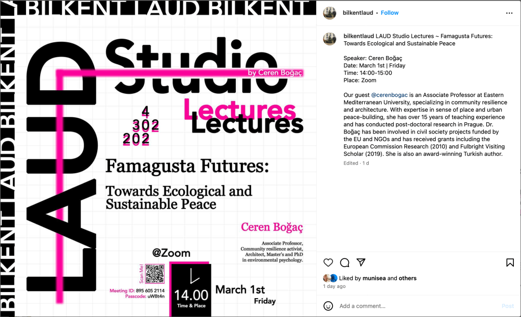 I would like to thank the course instructors Hatice Karaca and Bülent Batuman for their kind invitation and for giving me the chance to emphasize once again that peaceful and sustainable planning in Famagusta is not possible through non-transparent processes, but with the participation of the city’s former and current residents.