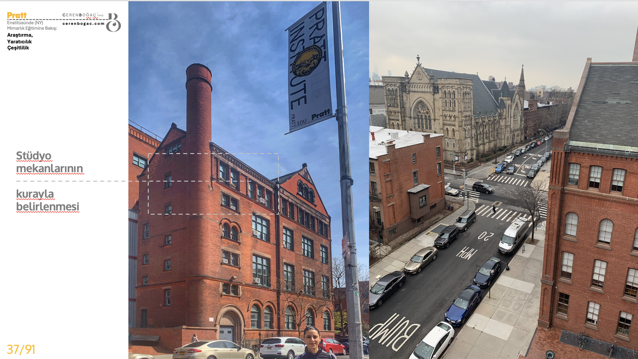 Türkçe Pratt Enstitüsünde (NY) Mimarlık Eğitimine Bakış: Araştırma, Yaratıcılık, Çeşitlilik Posted by cerenbogac on November 20, 2024January 4, 2025 Sevgili Derya Oktay hocamın daveti üzerine, Maltepe Üniversitesi öğrencileriyle, bir dönem Fulbright bursuyla misafir öğretim üyesi olarak ders verdiğim, Pratt Enstitüsü (NY) Mimarlık Okulunun eğitim felsefesine dair stüdyo deneyimlerimi paylaşım. Share this: Click to email a link to a friend (Opens in new window) Email Click to share on Facebook (Opens in new window) Facebook Click to share on X (Opens in new window) X Click to share on Reddit (Opens in new window) Reddit Click to print (Opens in new window) Print Click to share on Pinterest (Opens in new window) Pinterest Click to share on WhatsApp (Opens in new window) WhatsApp Click to share on LinkedIn (Opens in new window) LinkedIn Click to share on Tumblr (Opens in new window) Tumblr Like Loading... Related