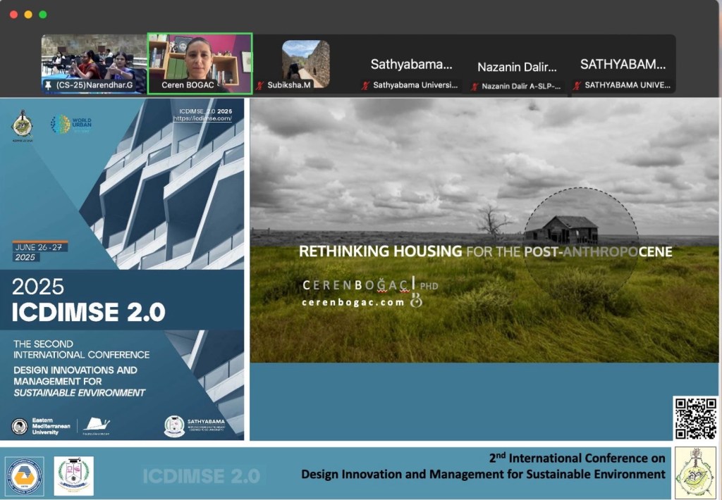 I participated in the ICDIMSE 2.0 2025 (The Second International Conference on Design Innovations and Management for a Sustainable Environment), which we jointly organized with Sathyabama Institute of Science and Technology in India, with my research titled “Rethinking Housing for the Post-Anthropocene.”