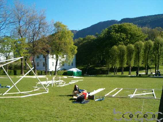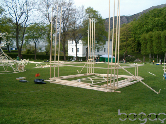 Bergen International Wood Festival (BIWF) is focusing on structures made from wood, and the material’s constructive and molding qualities. As part of this focus a competition is arranged in experimental construction of spatial wooden structures. Designers, architects and artists from all over the world are invited to this grand competition in May in Bergen. Me and my two colleagues were participated the first of this competition.