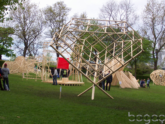 During the festival, different kinds of social and professional events took place in the afternoons and evenings. During daytime there were full work effort. 24 different projects energed, fascinating in diversity. Every project had its own distinctive character and individual quality. Together the projects showed an amazing span of shape, construction, structures and spatial qualities. During this week there were produced 1,5 man-labour years of work, from pure enthusiasm!