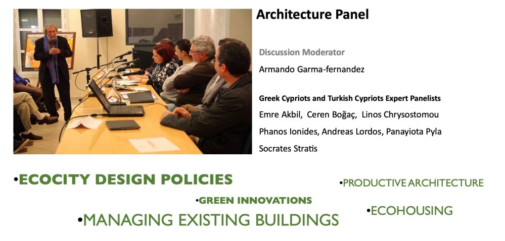 A design studio organized with the Master of Architecture students University of South Florida together with architecture, planning and engineering students from both sides of Cyprus to develop initial design ideas for an ecocity (some of them meeting fellow Cypriots from the “other side” for the first time).