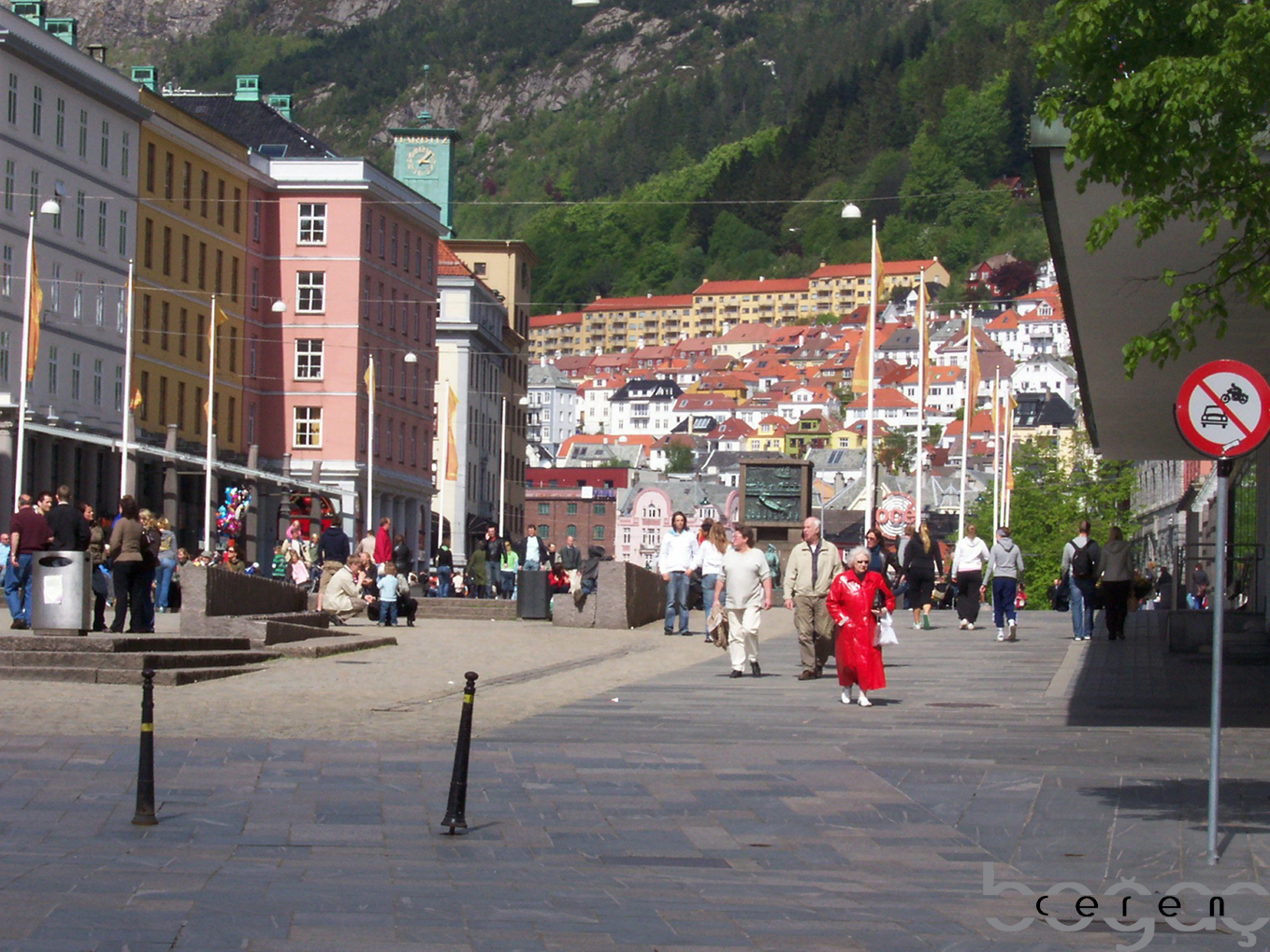 Bergen’de gördüğümüz ilk yer, limana indiğiniz zaman yosun kokusunun soluduğunuz havaya yayıldığı Brygen Rıhtımı’ydı. Ancak bu koku insanı bayıltan, rahatsız eden değil- kenti sarmalamış bir tütsü kokusu gibiydi adeta… Kentte her şey limanın etrafında toplanmış ve yürüme mesafesinde: çiçek ve balık pazarı ile yan yana mağazalar ardı ardına sıralanıyor.