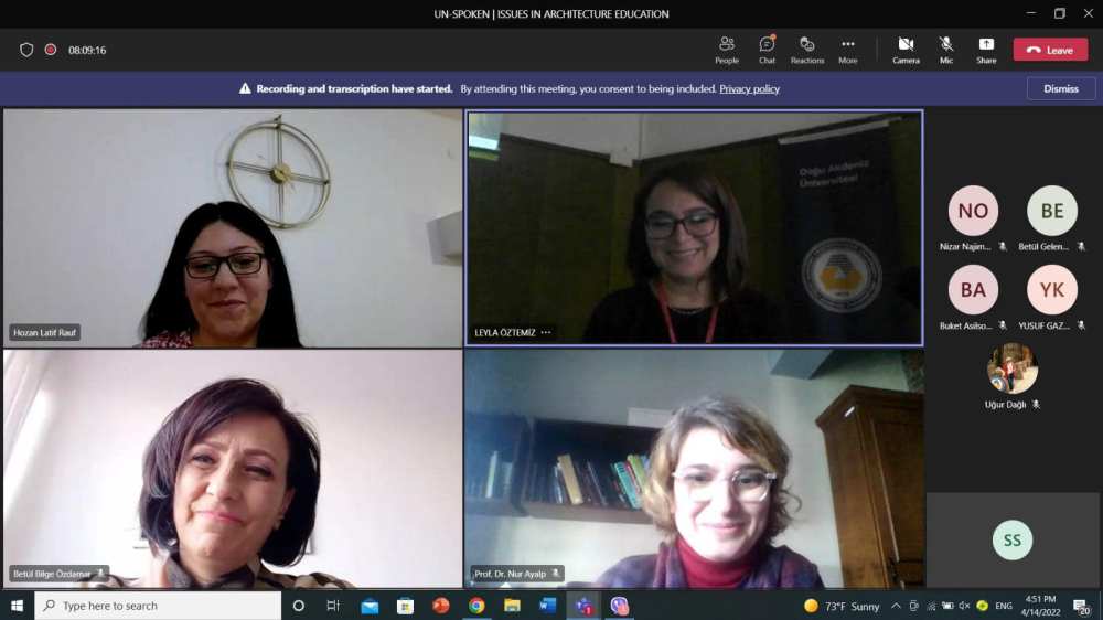 The International Conference on Architectural Education with the theme of “Unspoken” is going to be held in the Faculty of Architecture, Eastern Mediterranean University in Gazimagusa (Famagusta), North Cyprus, in April 14 – 15, 2022 . The meeting is organized with the intention that scholars, practitioners and students will come together for discussing architectural education from various perspectives.