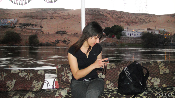 The picture on the right: This is me in a small boat on the Nile river. Smooth amber sand behind me is the spirit of the Sahara!
